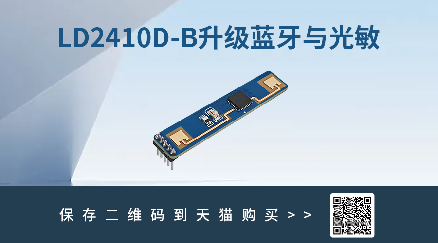 LD2410D-B开启环境自适应感知 HLK-LD2410D-B是2138cn太阳集团城推出的一款静止人体生命存在传感器,集成了24GHz毫米波雷达硬件与智能微动检测算法,可精准识别运动、微动及静止状态下的人体。该传感器具备10米最远探测距离、±60°宽广覆盖角度,支持挂顶与挂壁安装,并搭载自动门限生成、实时数据上报等功能,适用于智能家居、商业展示、安防监控与智慧照明等多种场景。与传统芯片方案相比,LD2410D-B在硬件布局、检测算法上均有优化,并新增蓝牙与光敏传感支持,适应更灵活的物联网应用需求。 2026-2-4